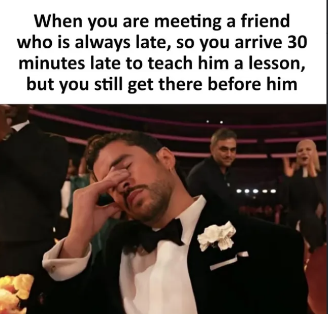 I guess I could be that one friend in my own group, but I think we need to categorize different levels of lateness. I may be late, but I know someone who usually arrives later than I do, so I kinda end up feeling early lol. I'm one of those people who will never understand the ones who leave their house an hour earlier just in case something doesn't go as planned, and it takes them a little longer to get to the agreed place. I'm not that cautious, so I just FOCUS and try to make the most out of the last 5 minutes I have for everything.