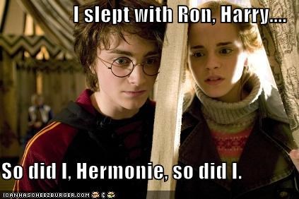 I slept with Ron, Harry.... So did I, Hermonie, so did I. (Daniel Radcliffe, Emma Watson)