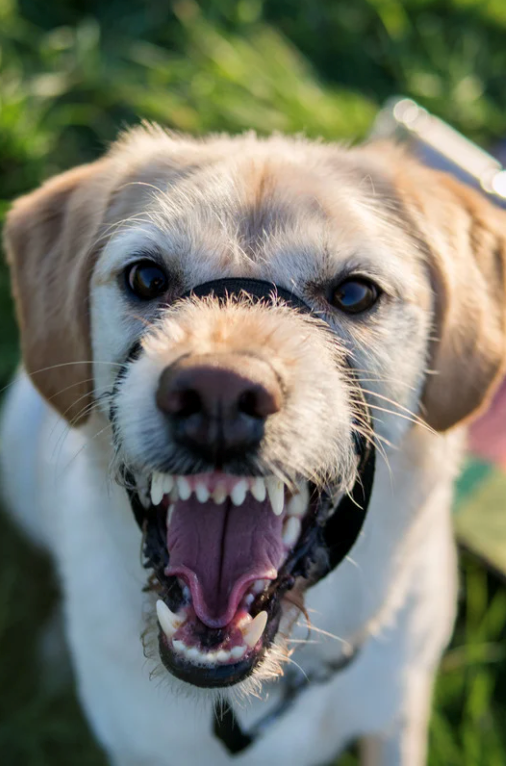 Aggressive dog showing teeth and growling fiercely