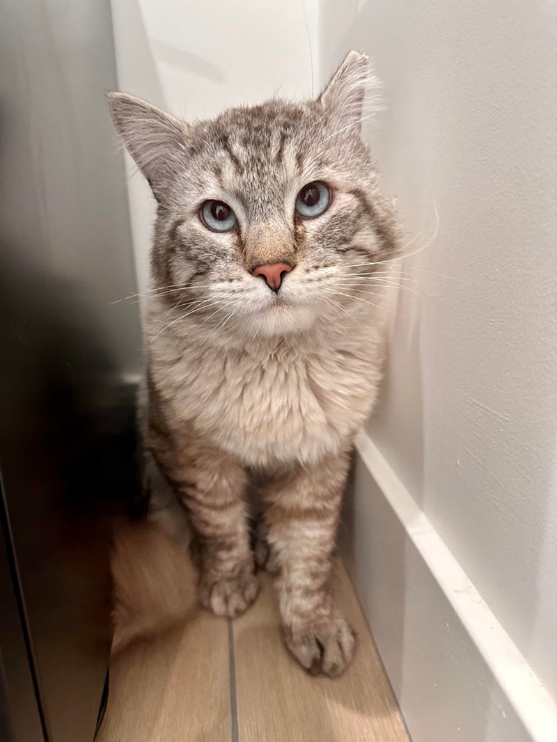 "He’s 4 years old — rescued as a stray and from a feral colony that was apparently bullying him.