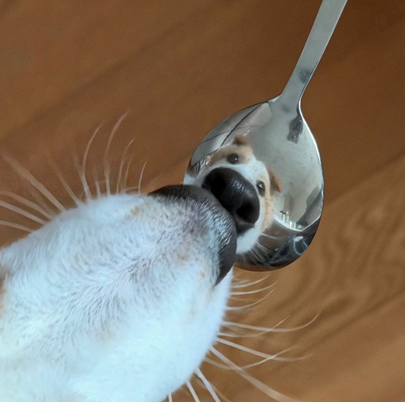 We know we're not supposed to teach our dog to jump, but we can't help it. We invite her up, and she rests her front paws on us and then gives us a biiiiiiiiiiiig stretch that looks so satisfying. How could we deny her that experience? It would be irresponsible of us. Others will just have to deal with her saying “hello” like that, because she's our pup and what we say, goes!