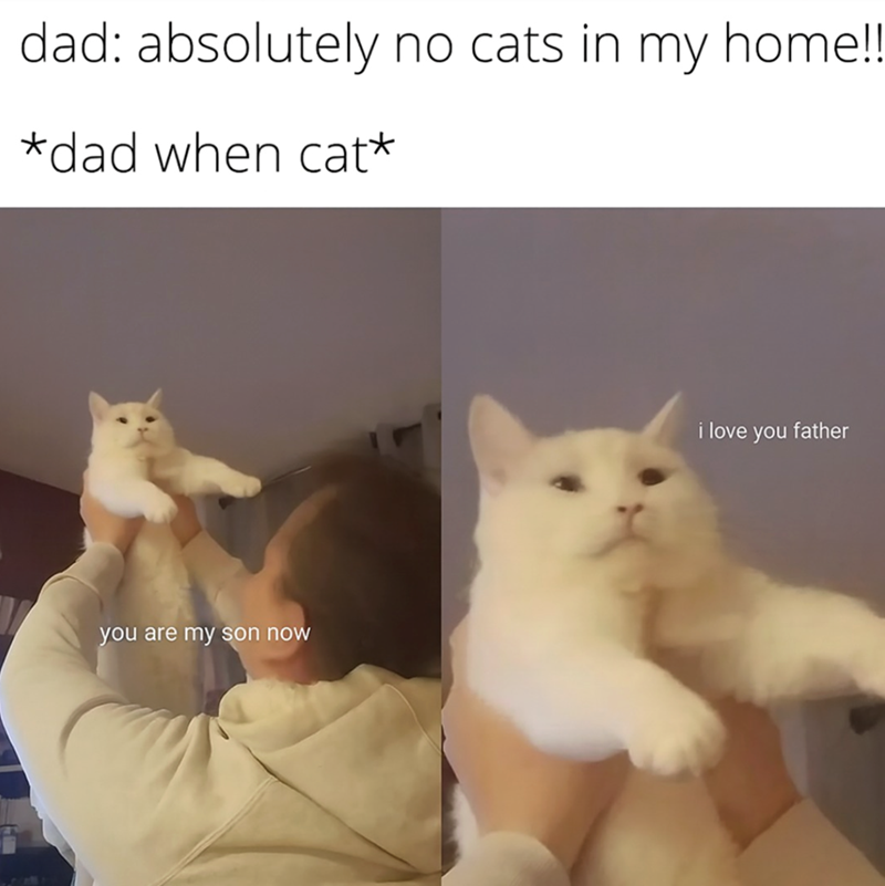 It’s always the dads who say they don’t want a cat that end up the most attached. First it’s “no pets,” then suddenly the cat has a nickname, a favorite spot next to them, and a full routine. They’re the ones checking on it, talking to it, making sure it’s good. It turns into their cat before anyone even notices.