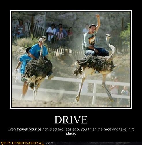 DRIVE Even though your ostrich died two laps ago, you finish the race and take third place.