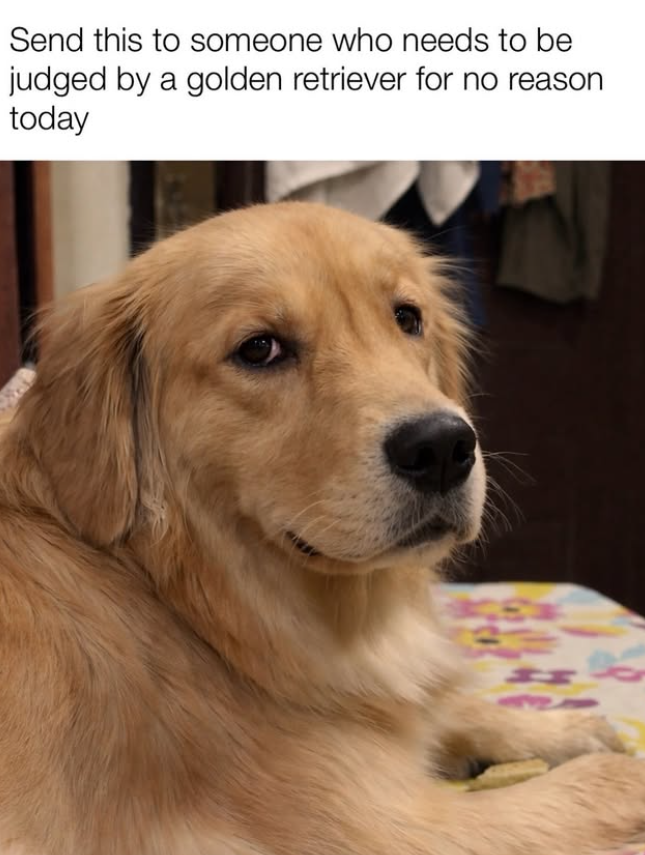 Send this to someone who needs to be judged by a golden retriever for no reason today