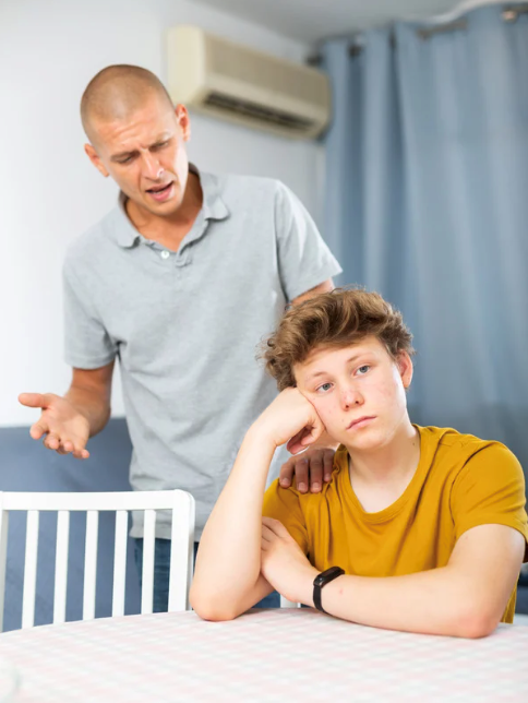 Dissatisfied father scolds son at home