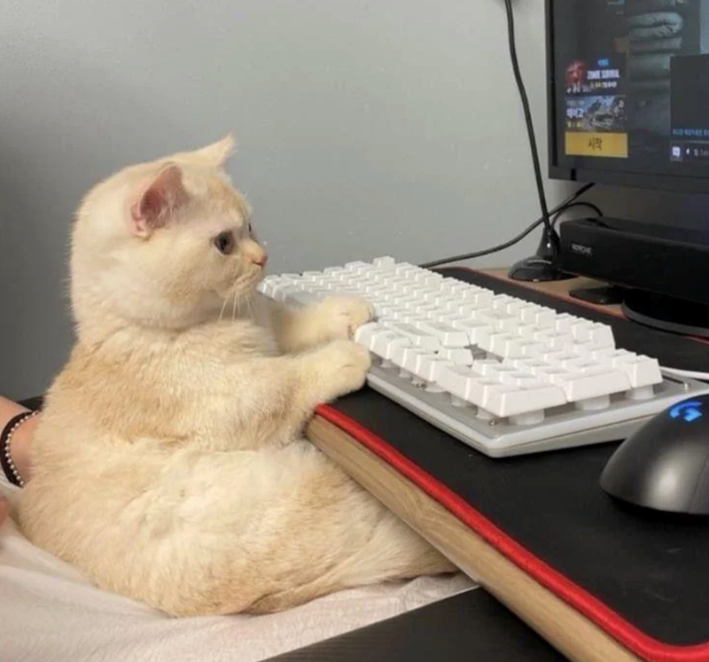 This cat looks exactly how a lot of us feel on Monday. Trying to get into work mode, maybe a little tired, maybe already questioning the week ahead. The expression says a lot. Very relatable start to the workweek. It has that “I’m here, I’m clocked in, let’s get this over with” energy.