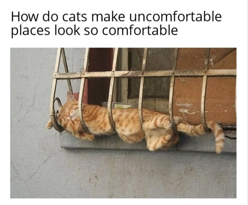 The commitment is what really gets you. There's no half-melting here. Once the decision is made, it's total, every limb deployed in a different direction, eyes closed, completely unbothered, phased into whatever parallel dimension they've quietly relocated to. Scientists have yet to formally explain how seven pounds of cat can drape over a chair and somehow produce fourteen pounds of visible animal. Quantum physicists have theories. The subjects of this gallery do not care about the theories.