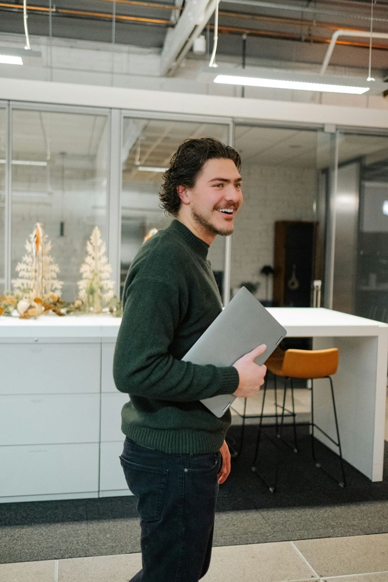 An overly confident young employee strolls into a meeting to ask his boss for a 50% raise.