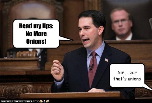 Read my lips: No More Onions! Sir ... Sir that's unions (Scott Walker)
