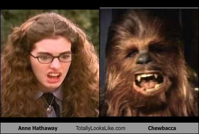 Anne Hathaway Totally Looks Like Chewbacca "The Princess Diaries" might have reached a larger audience (read: people who are not 11-year-old girls) if Wookiees had been cast to play all of the roles. Yes, even Julie Andrews'.