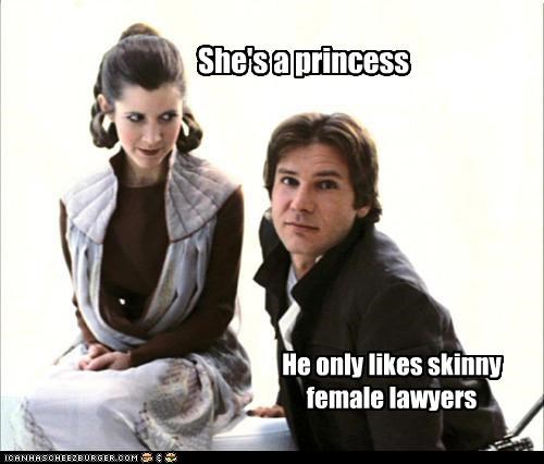 shes a princess he only likes skinny female lawyers (Carrie Fisher, Harrison Ford)