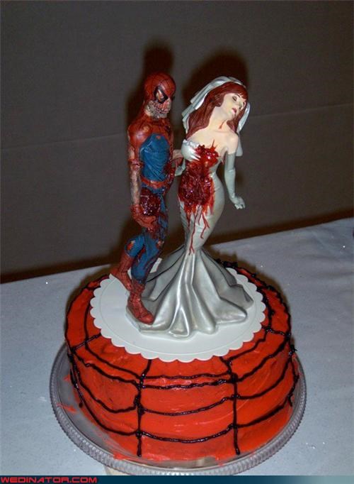 We consider this to be our main wedding cake from our wedding in 2009. Went through a family bakery, looks kind of eh, but it was red velvet with cream cheese icing. Yes... It was delightful. The whole reception was comic book themed.