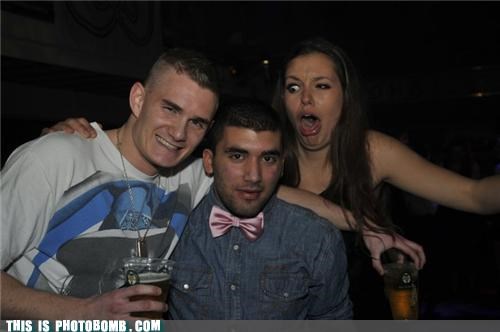 The denimish shirt with pink bow-tie made my eye do that too.