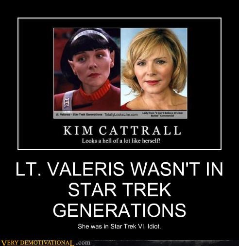 LT. VALERIS WASN'T IN STAR TREK GENERATIONS she was in Star Trek VI. Idiot.