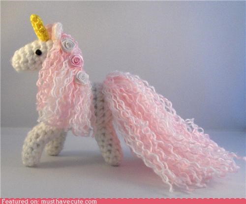 Like a soft, tiny version of my beloved My Little Ponies of yore, this unicorn has the flowingest mane and tail I've seen since I was seven.