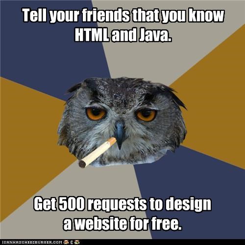 Art Student Owl: Tell your friends that you know HTML and Java.