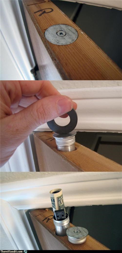 The creator will not take responsibility for stashing items other than cash and flash drives. ~Not-So-Handy Andy