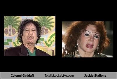 Colonel Gaddafi Totally Looks Like Jackie Stallone The only thing I know about Colonel Gaddafi is that his fashions are amazeballs. The only thing I know about Jackie Stallone is this: