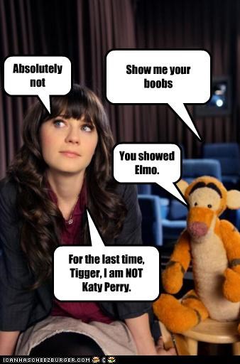 show me your b00bs absolutely not you showed elmo for the last time tigger i am not katy perry (Zooey Deschanel)
