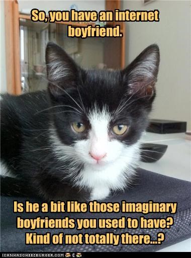 So, you have an internet boyfriend. Is he a bit like those imaginary boyfriends you used to have? Kind of not totally there...?