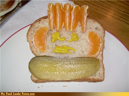 If someone presented me with a pickle, orange and mustard sandwich, my face would look just like poor mister snackface here.