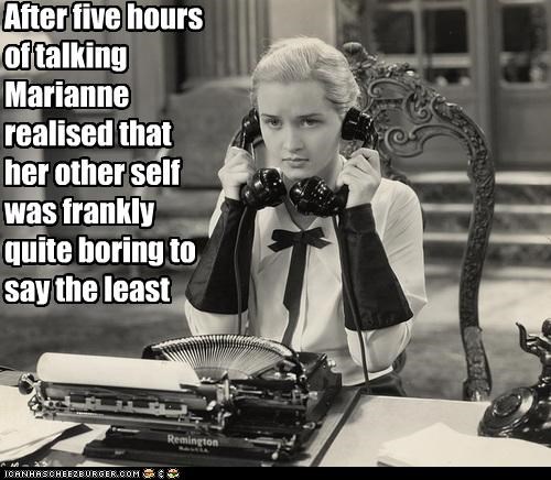 After five hours of talking Marianne realised that her other self was frankly quite boring to say the least