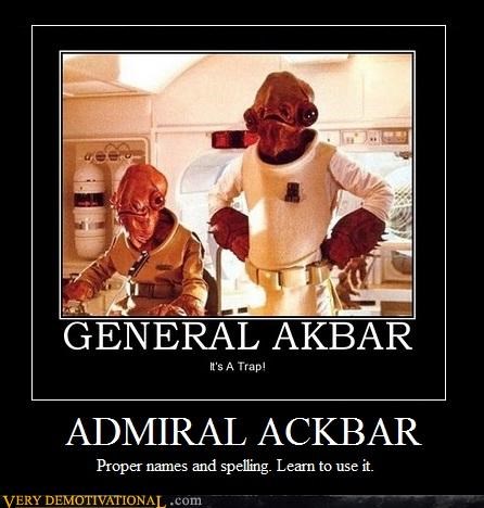 ADMIRAL ACKBAR Proper names and spelling. Learn to use it.