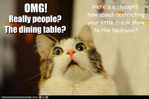 OMG! Really people? The dining table? Here's a thought: how about restricting your little freak show to the bedroom?