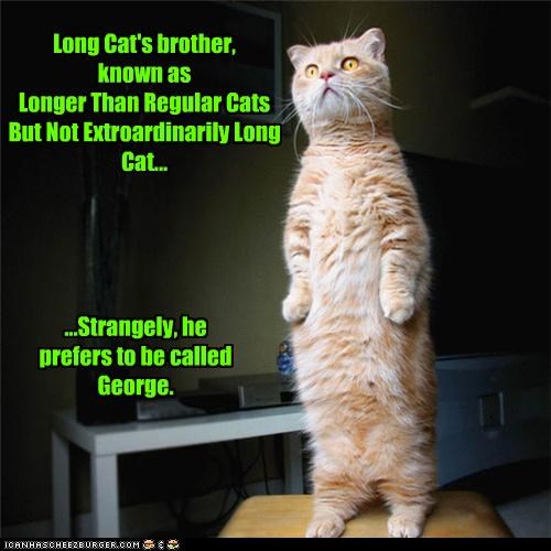 Long Cat's brother, known as Longer Than Regular Cats But Not Extroardinarily Long Cat... ...Strangely, he prefers to be called George.