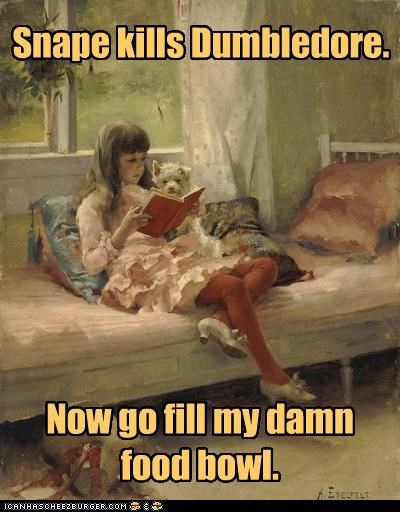 Snape kills Dumbledore. Now go fill my damn food bowl.