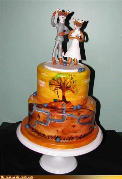 This charming confection was used as a groom's cake at what was undoubtedly an amazing wedding. Anyone who can weather a cluster-cuss with the grace of the foxes is tops in my book!