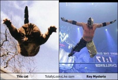 This Cat Totally Looks Like Rey Mysterio Given the choice, I would choose to wrestle a cat over an actual wrestler. And not just because I think I could win, but because wrestling with a cat is really just code for snuggle times.