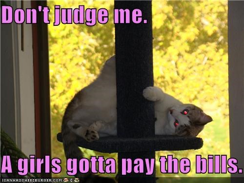 Don't judge me. A girls gotta pay the bills.