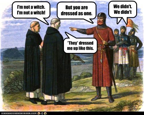 I'm not a witch. I'm not a witch! But you are dressed as one. They dressed me up like this. We didn't. We didn't.