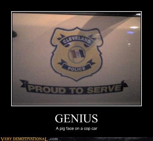 GENIUS a pig face on a cop car