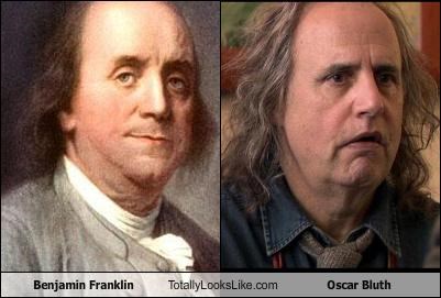 Benjamin Franklin Totally Looks Like Oscar Bluth (Jeffrey Tambor) Riddle me this: How many American bills featuring the face of Benjamin Franklin were lost in the Great Banana Stand Fire of 2003? PS - Inb4 "Other way around!"