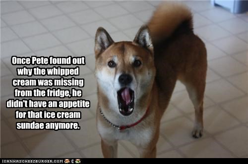 Once Pete found out why the whipped cream was missing from the fridge, he didn't have an appetite for that ice cream sundae anymore.