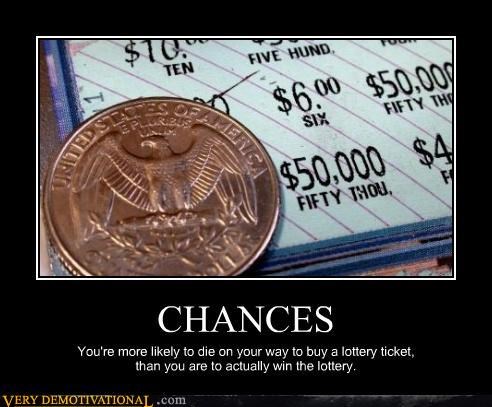 CHANCES you're more likely to die on your way to buy a lottery ticket, than you are to actually win the lottery.