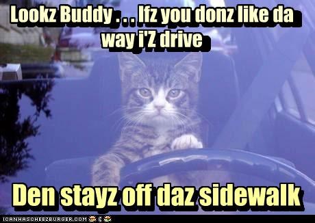 Lookz Buddy. . . Ifz you donz like da way i'Z drive Den stayz off daz sidewalk