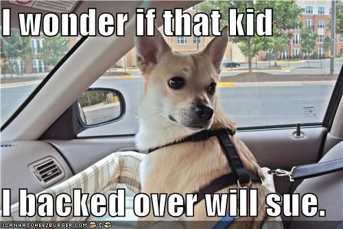 I wonder if that kid I backed over will sue.