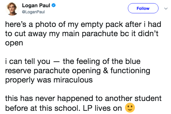 Logan Paul's Parachute Failed To Open During Skydiving And Internet's Got Jokes