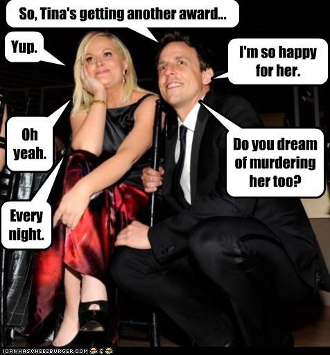 so tinas getting another award yup im so happy for her oh yeah do you dream of murdering her too every night -Amy Poehler, Seth Meyers