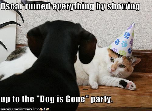 Oscar ruined everything by showing up to the "Dog is Gone" party.