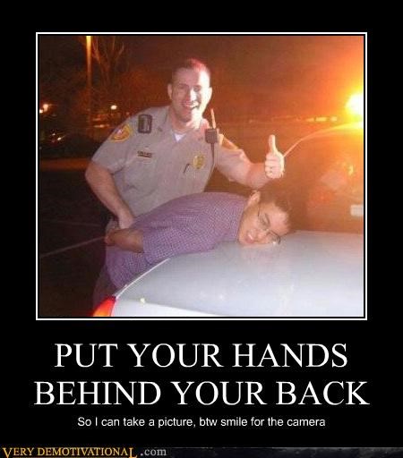 PUT YOUR HANDS BEHIND YOUR BACK so I can take a picture, btw smile for the camera.