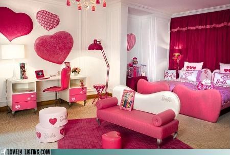I'd imagine staying in this Barbie hotel suite involves huffing a lot of plastic fumes and hours and hours of brushing your hair and trying on clothes. Occasionally there's a slap fight or an awkward tryst with a helmet-haired man of questionable sexuality.