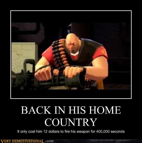 BACK IN HIS HOME COUNTRY it only cost him 12 dollars to fire his weapon for 400,000 seconds