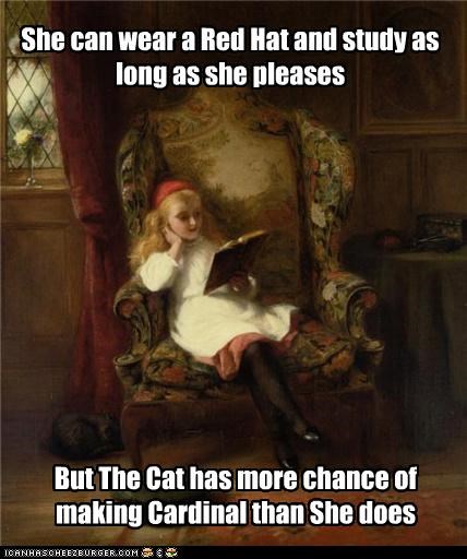 She can wear a red hat and study as long as she pleases but the cat has more chance of making Cardinal than she does