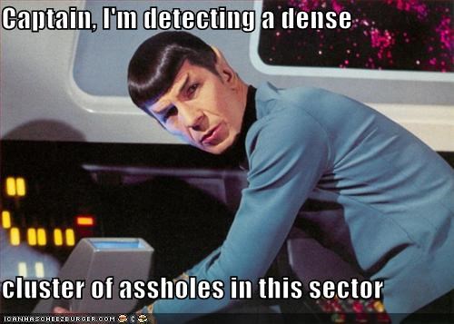 Captain, I'm detecting a dense cluster of a*sholes in this sector. -Leonard Nimoy