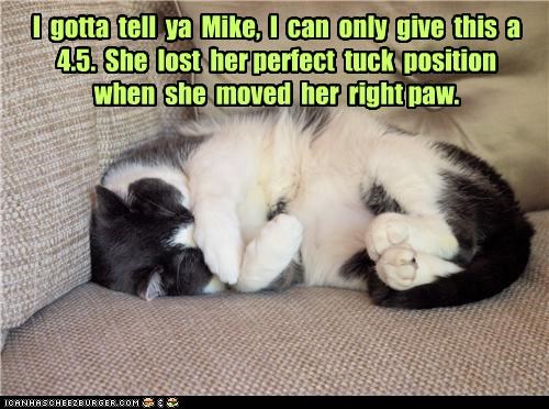 I gotta tell ya Mike, I can only give this a 4.5 She lost her perfect tuck position when she moved her right paw.