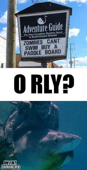 The 1979 film "Zombie" shows us not only can they swim, they also hate sharks.